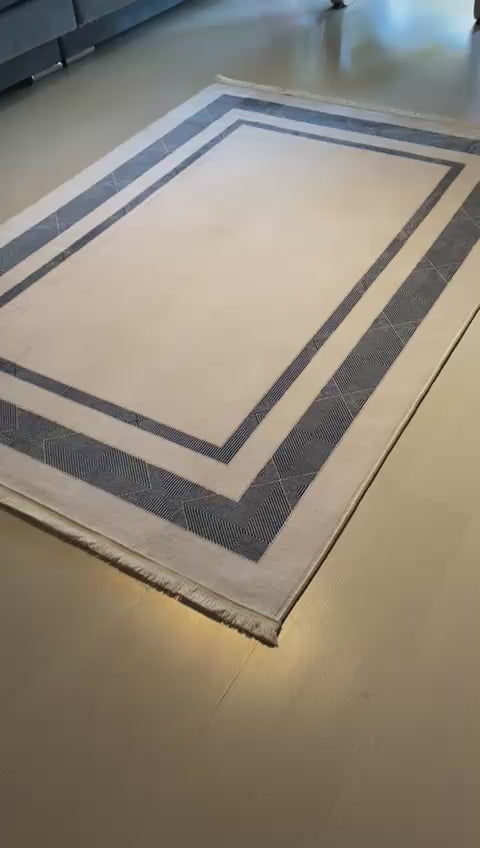 KOYU GRİ - KREM DEKORATİF HALI